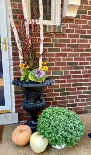 The idea blends hospitality with holiday charm. Even if no one actually drinks from it, it looks adorable and cozy. It gives your porch that inviting, lived-in warmth that makes the season special.