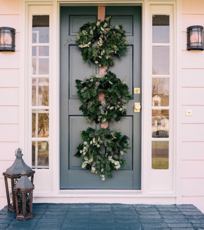Instead of hanging a single wreath, try three in a vertical line down your door. Choose simple greenery ones for a natural look, or add subtle touches like white ribbon and silver bells for a hint of sparkle. The repetition creates a lovely sense of balance, and it works especially well on taller doors.