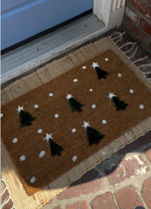 Layering doormats adds texture and personality to your porch. Start with a larger jute or plaid mat, then add a smaller one with a festive message on top. It frames the space nicely and feels well thought-out.