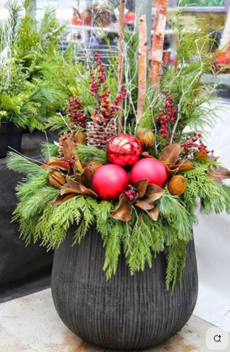 Fill your porch planters with oversized ornaments instead of flowers. Choose glossy reds, metallic silvers, or shimmering greens that catch the light beautifully. Mix in some greenery or artificial snow for fullness. It’s a playful, eye-catching idea that adds a little whimsy to traditional decor. You can even add a few twinkling lights inside for evening sparkle.