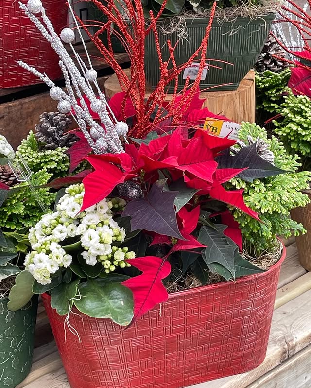 A cluster of potted poinsettias brings instant color and cheer to any porch. Their deep red leaves and dark green stems feel like the essence of Christmas. You can place them in baskets or galvanized buckets for a rustic touch. Grouping several together makes more impact than just one or two.