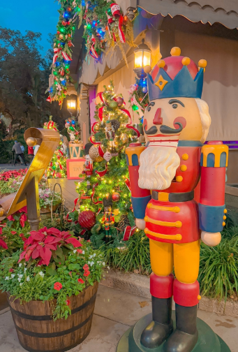 Adding tall toy soldier figures beside the door creates a bold, traditional statement. They bring instant personality and a playful, nostalgic feel. The bright colors and clean lines pair beautifully with simple greenery.