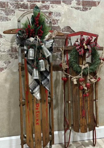 A vintage sled leaning near the door adds a touch of nostalgia that never fails to charm. You can tie a bundle of fresh greenery and ribbon to the top for color, or hang a small sign that says “Merry Christmas.”