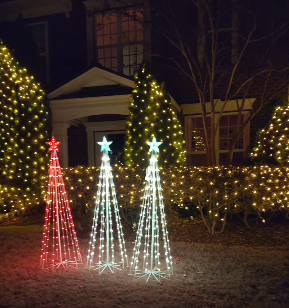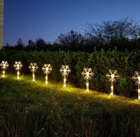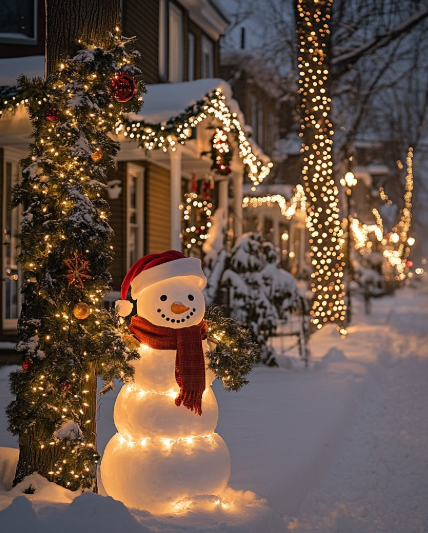 Snowy stake lights bring a gentle glow to garden beds and pathways, creating a calm winter scene that feels quiet and inviting. These lights usually have soft, rounded tops that look like little mounds of snow, which adds a playful touch without feeling too busy. I like placing them in a loose line rather than a perfect row because the slight irregularity feels more natural. When they light up at dusk, the effect is almost like tiny winter lanterns guiding you along the yard. And the soft brightness blends beautifully with nearby shrubs or evergreen planters.