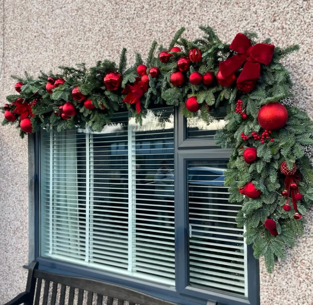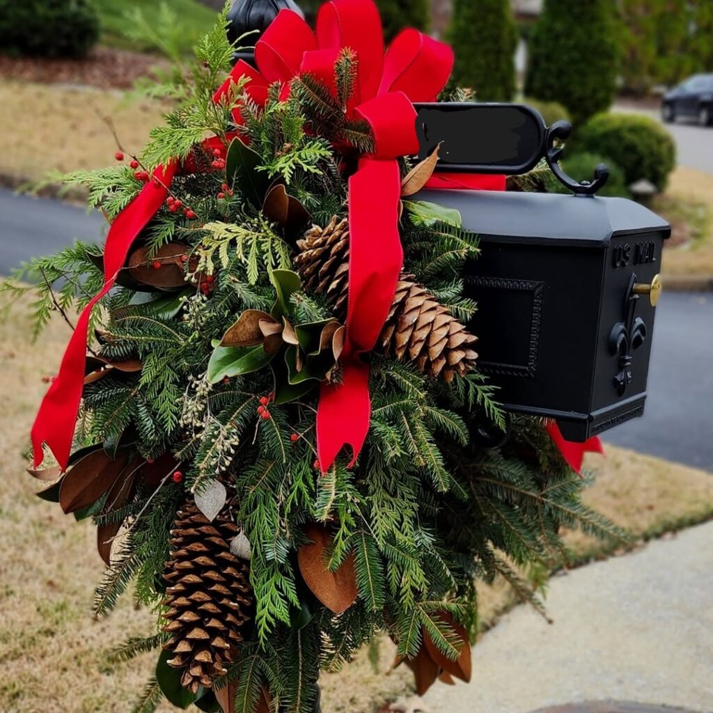 Decorating your mailbox with greenery and ribbon brings a bright, welcoming moment right at the edge of your property. A thick piece of faux pine wrapped around the top adds fullness, and a richly colored bow provides a lovely focal point. I like placing a few ornaments on one side to keep it fun without feeling cluttered.