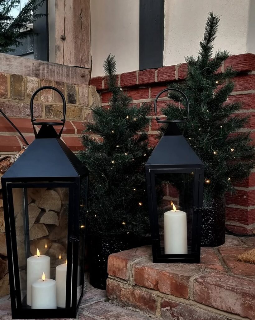 Placing lanterns along a front walkway creates a peaceful guide of warm light that feels calm and inviting. You can fill them with real candles if you like a flickering glow or use battery candles for an easy, worry free option. I enjoy mixing lantern sizes because the variety keeps the arrangement interesting without feeling too formal.