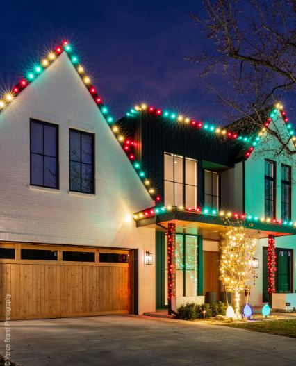 The lights guide the eye across the architecture of your home, which makes the whole scene feel more structured. And when paired with a few lawn decorations or porch lights, the roofline creates a beautiful backdrop for your entire yard.