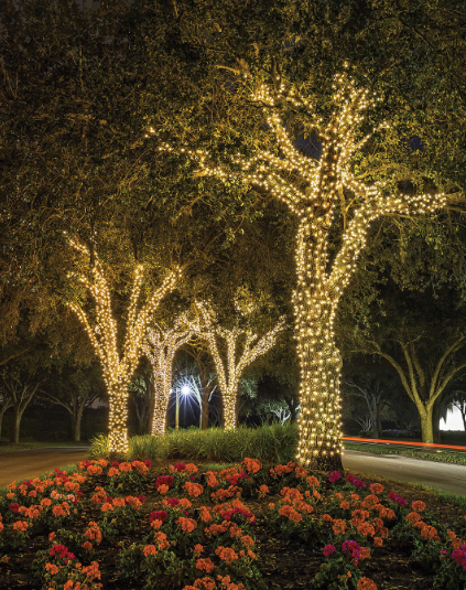 You can place them on a single shrub for a sweet little accent or cover several plants for a more unified look. And when the lights reflect off nearby snow or mulch, the shrubs seem to shimmer in a gentle, soothing way.