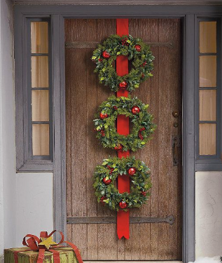 Adding soft ribbon ties gives the trio a gentle finish without overwhelming the greenery. When the wreaths catch a bit of porch light at night, the scene becomes warm and peaceful. It is an easy approach that still feels polished and full of seasonal charm.